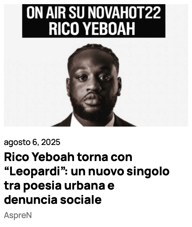 “Rico Yeboah torna con “Leopardi”: un nuovo singolo tra poesia urbana e denuncia sociale“
